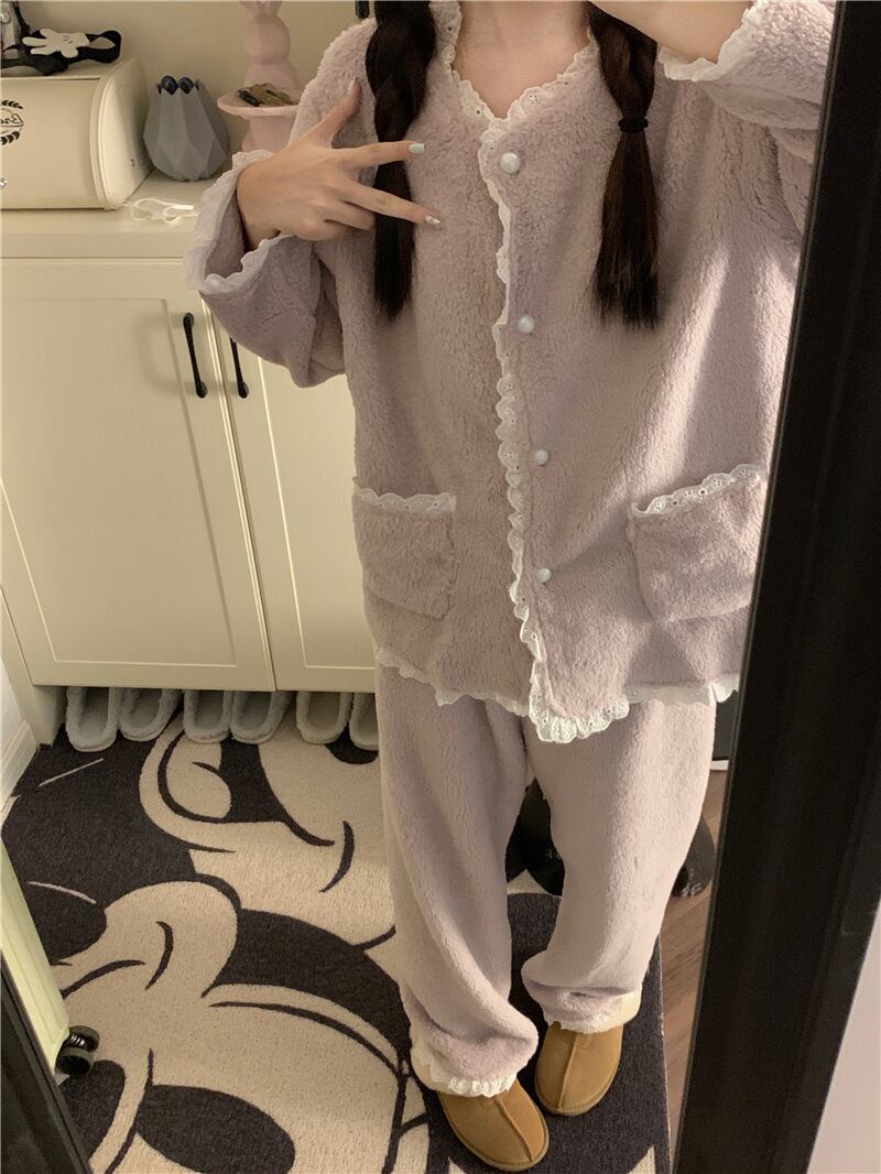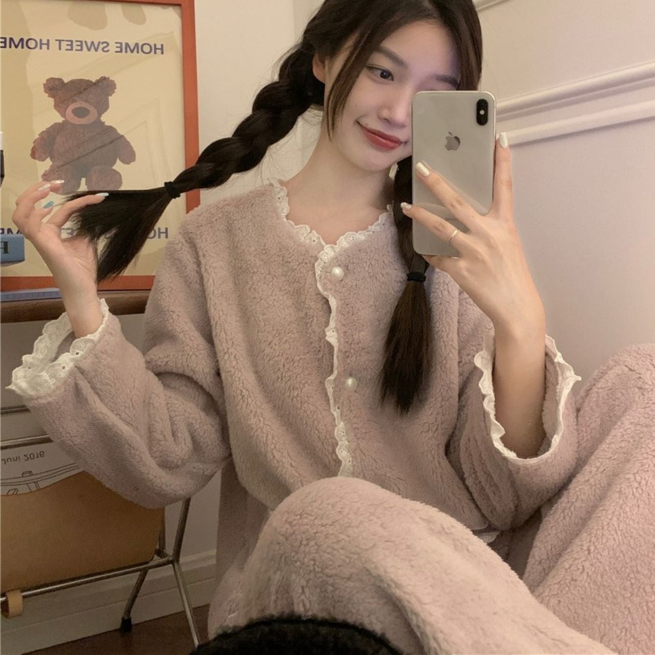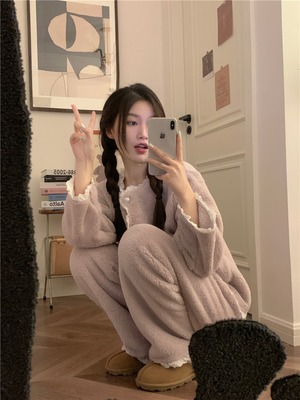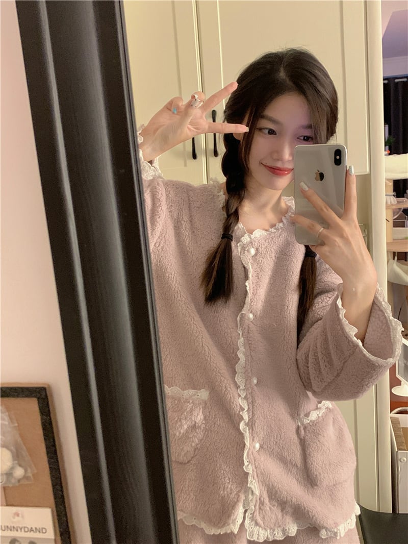 【送料無料】もこもこ ルームウェア セットアップ ツーピース 上下セット レース きれいめ エレガント ふわふわ 個性的 暖かい 可愛い ラブリー キュート 秋冬 着る毛布 レディース 部屋着 ラフ ナイトウエア パジャマ 寝間着 お家コーデ ベージュ ワンサイズ フリーサイズ インスタ映え 普段使い デイリー使い お泊り 女子会 お揃い 双子 旅行 パジャマパーティ 主役級 トレンド 抜け感 オシャレ ゆったり らくちん ルーズ ゆる プチプラ プレゼント 10代 20代 db4545