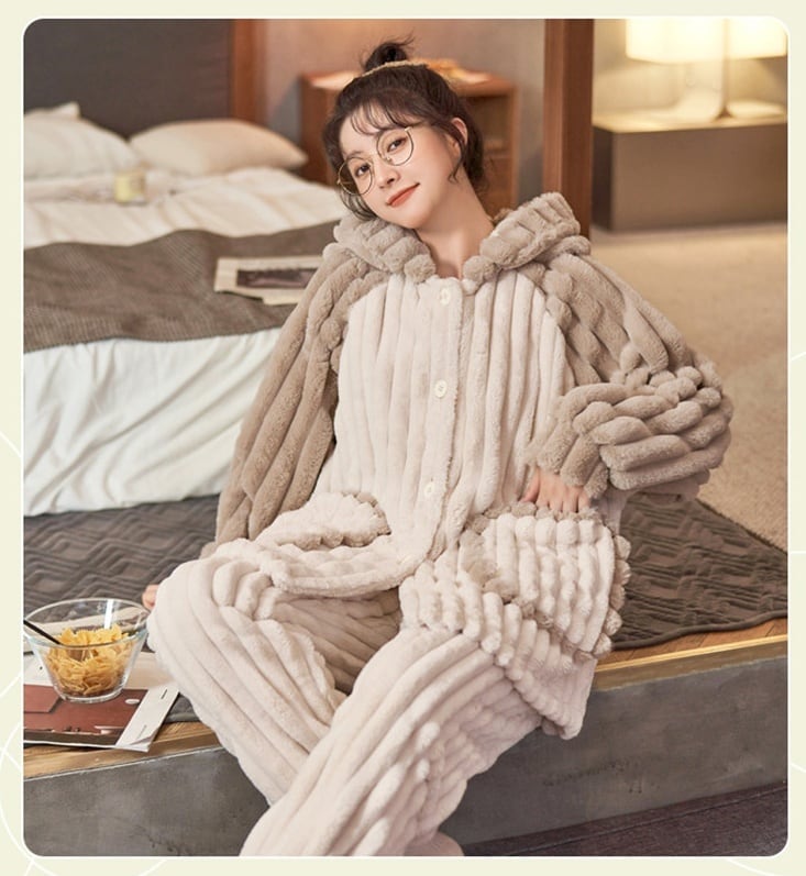 【送料無料】もこもこ ルームウェア 上下セット パンツ 秋冬 パジャマ モコモコ ベージュ バイカラー 大人可愛い 個性的 ミルクティー 茶色 ブラウン 部屋着 着る毛布 お家コーデ 寝巻き あたたかい 防寒 ボタン 前開き フリル 韓国 ファッション きれいめ カジュアル ズボン M L XL 2XL 大きいサイズ セットアップ フリース ポケット 家族 旅行 お揃い 双子 リラックス ゆったり 楽ちん ツーピース ナイトウェア プレゼント ママ 母 大人っぽい ニュアンス 抜け感 人気 db4576