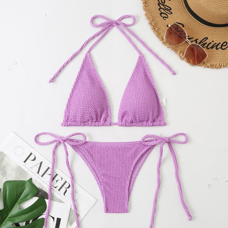 【送料無料】ブラジリアン ビキニ 水着 レディース セクシー 紐ビキニ 三角ビキニ 上下セット ニット 個性的 かっこいい シンプル ヘルシー 蛍光カラー 無地 黒 青 紫 赤 黄色 水色 ピンク ブラック ブルー パープル レッド イエロー 海外 水着 セパレート モデル 10代 20代 30代 夏 S M L XL グラビア 衣装 写真 撮影 イベント コスプレ トライアングル サイドリボン 日焼け 露出 映える ビキニ db4615