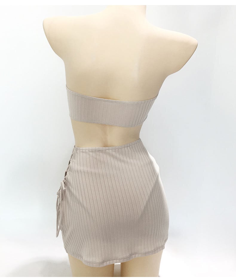 サイドの編み上げ風デザインがオシャレなスカート付きの3点セット