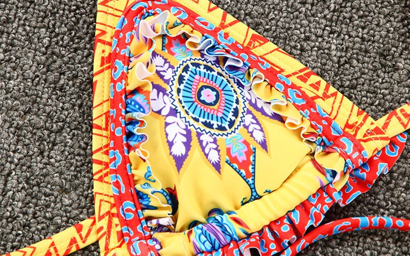 鮮やかなカラーリングとカラフルな柄が夏にぴったりの紐ビキニ!