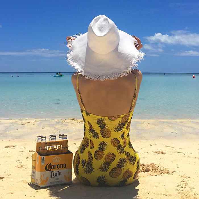 ワンピース 水着 パイナップル柄 フルーツ柄 南国 韓国系 レトロ 可愛い 個性的 ドッキング ワンピ 水着 青 ブルー 黄色 イエロー パイン 模様 バイカラー きれいめ お洒落 ユニーク 女性用 オールインワン キャミ ブラタイプ 紐 パッド入り