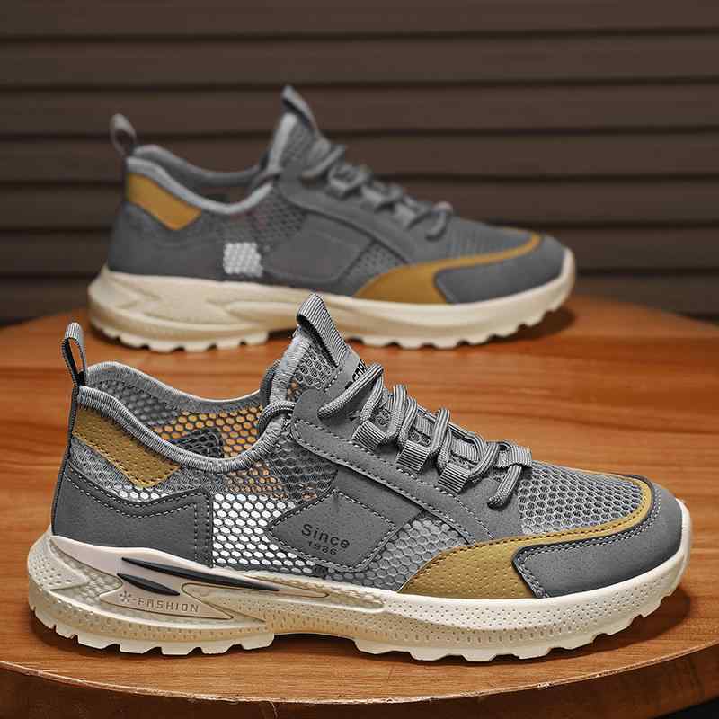 スニーカー メンズ メッシュ 通気性 涼しい 厚底 シューズ 韓国系 運動靴 春夏 透け感 バイカラー 黒 ブラック ベージュ 灰色 グレー ローカット おしゃれ かっこいい 個性的 厚底靴 スポーティー 蒸れにくい きれいめ サマーシューズ 男性用