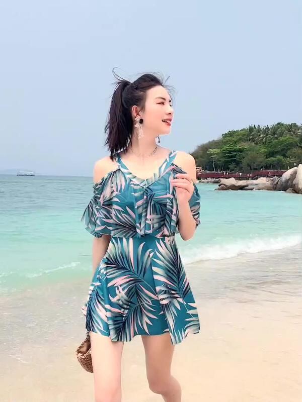 ワンピース 水着 スカート 体型カバー オフショル 大人可愛い 韓国系 ワンピ 水着 大きいサイズ 2XL 3XL 緑 ボタニカル リーフ柄 白 和風 和柄 パイナップル柄 オールインワン 半袖 二の腕 お尻 太もも カバー おしゃれ ママ 個性的