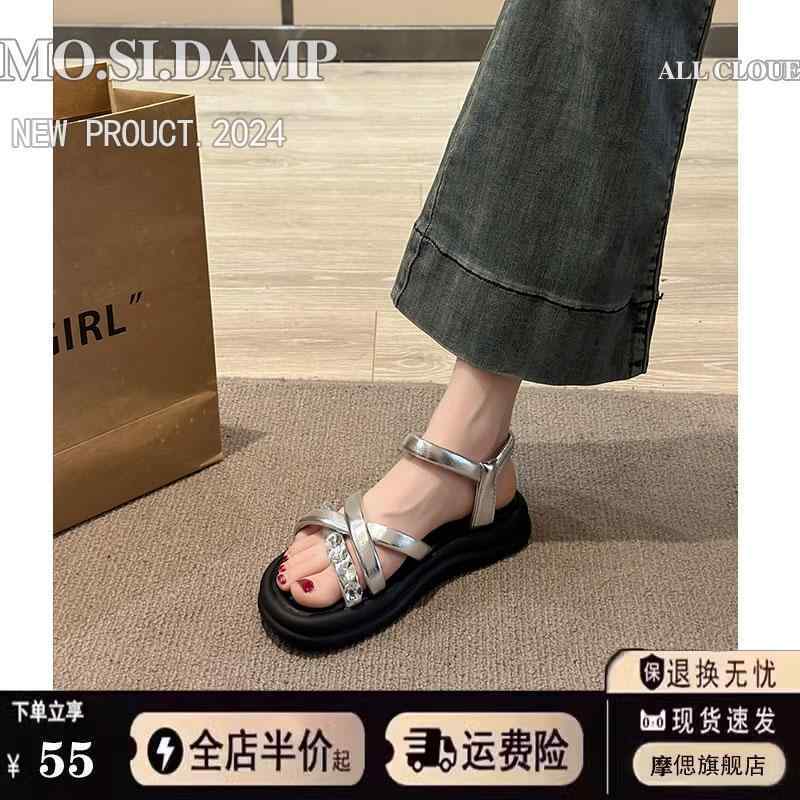 スポサン 厚底 サンダル ビジュー キラキラ スポーツサンダル レディース 大人 きれいめ 韓国風 個性的 シューズ ビーサン ストラップ 黒 銀色 シルバー ベージュ グリッター クリスタル 宝石 コンフォートこなれ感 スリッパ 華やか ストラップ付