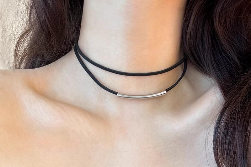 チョーカー 黒 シンプル 2連 ネックレス 紐 レディース きれいめ かっこいい 韓国系 首輪 ペンダント 華奢 細身 メタリック シルバー ブラック バイカラー 個性的 軽い デイリー 大人 上品 通勤 ビジネス 重ね付け風 二重 アクセサリー