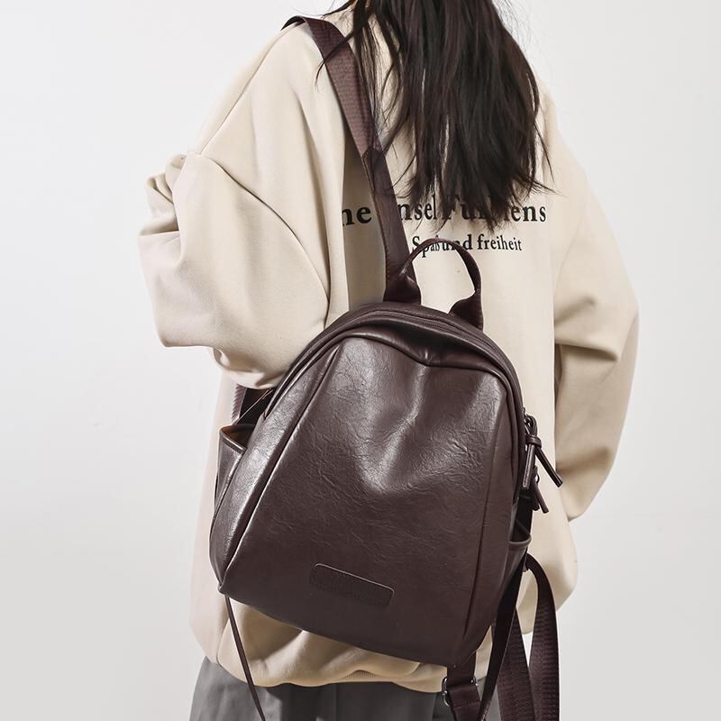リュックサック レザー きれいめ ラウンド 韓国系 レディース ショルダーバッグ 大人可愛い 革バッグ 黒 ブラック 茶色 ブラウン 無地 斜め掛け バッグ 可愛い 通勤 ビジネス 通学 学生 スクールバッグ 大容量 A4 大きい ファスナー こなれ感