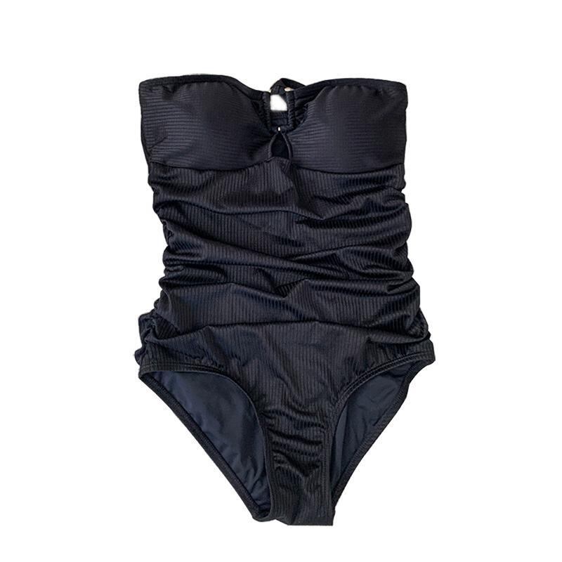 ワンピース 水着 黒 きれいめ シンプル チューブトップ ホルターネック 2way ブラック 無地 韓国系 ワンピ水着 かっこいい クール カットオフ 胸元 リング 個性的 ヘルシー 大人っぽ 女っぽ オールインワン スイムウェア おしゃれ ママ