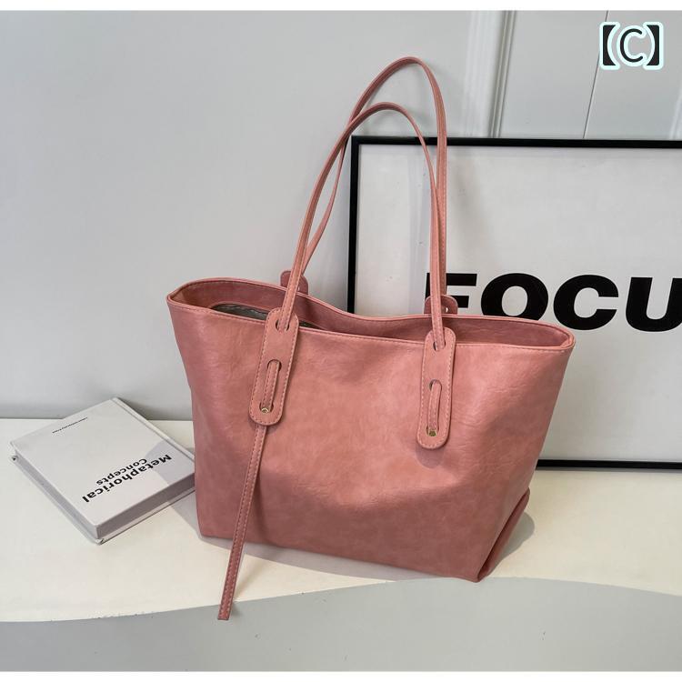 トートバッグ レザー 大容量 きれいめ 肩掛け バッグ 大きい ナチュラル 韓国系 合皮 革バッグ ソフトレザー 黒 白 ピンク カーキ 無地 台形 スクエア型 バケツ ベーシック 上品 フォーマル 通勤 仕事 ビジネスバック 大きい でかい ビッグ