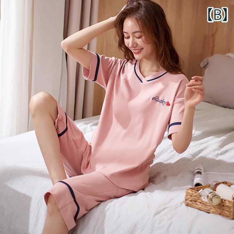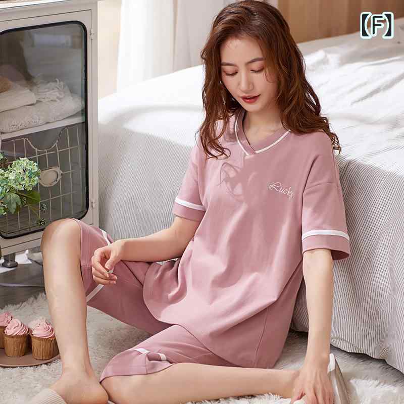 10色 ルームウェア レディース きれいめ 上下セット ショートパンツ パジャマ 韓国系 女子 ハーフパンツ 可愛い 半袖 春夏 部屋着 寝巻き ハート シンプル 無地 大人 ラフ ツーピース Tシャツ セットアップ 綿 コットン Vネック バイカラー