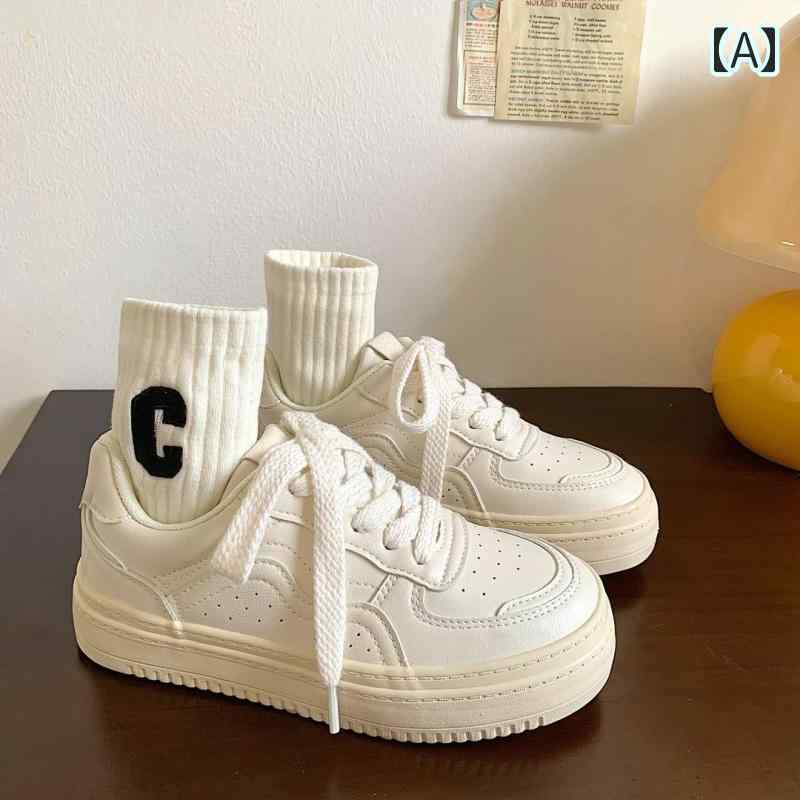 スニーカー 厚底 シンプル 白 黒 シューズ 韓国系 運動靴 レトロ 可愛い 運動靴 PUレザー 空気穴 ホワイト ベージュ 無地 ブラック バイカラー おしゃれ 学生 通学 女子 白スニーカー きれいめ くつ クツ ローカット 紐あり レースアップ