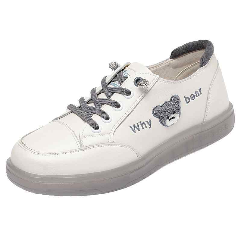 スニーカー くま クマさん 可愛い ローカット シューズ レディース 個性的 韓国系 白スニーカー 厚底 フラット ホワイト グレー バイカラー 紐あり 結ばない キャラクター 運動靴 ゴルフシューズ風 オルチャン レトロ ガーリー 女の子 キュート