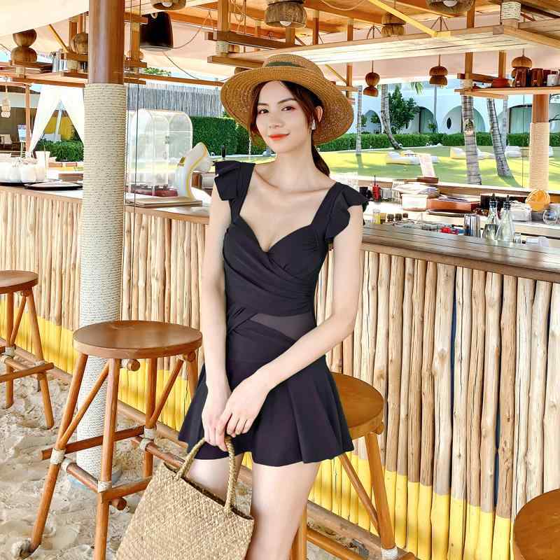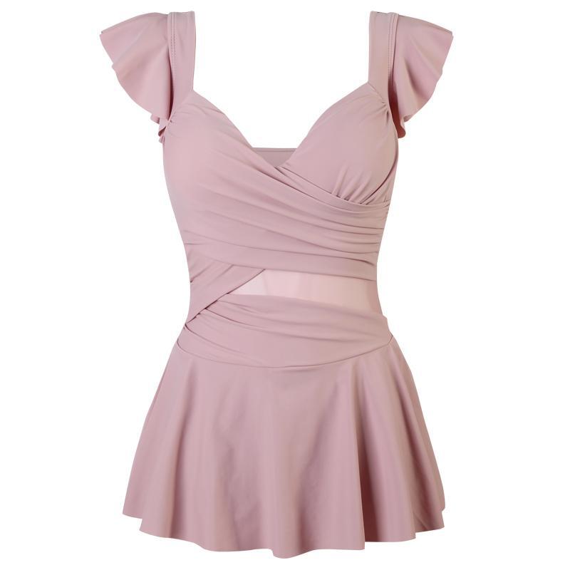 3色 ワンピース 水着 スカート レディース 袖あり 体型カバー かわいい フリル 水着 韓国系 黒 緑 ピンク 無地 透け感 シアー アシンメトリー きれいめ ワンピ 水着 オールインワン 半袖 ブラック グリーン シンプル ママ 個性的 おしゃれ