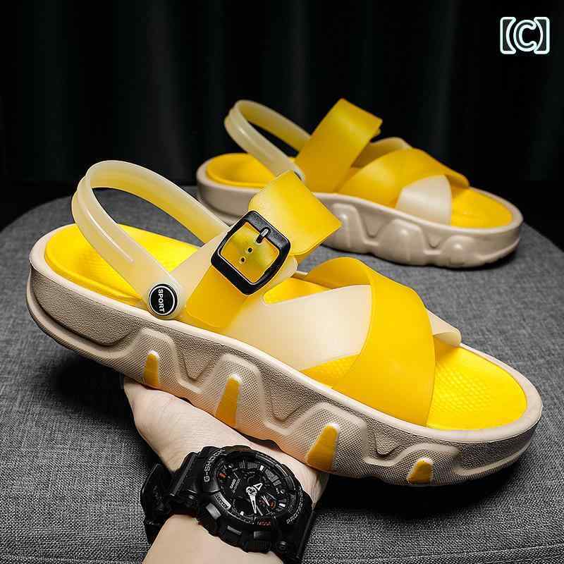 スポサン ビーサン メンズ かっこいい バイカラー 個性的 EVA 撥水 帽子 アウトドア キャンプ レジャー マリン シューズ 夏 おしゃれ サンダル 蛍光 緑 グリーン 黄色 イエロー 青 ブルー 黒 ブラック 白 ホワイト 厚底 メッシュ 涼しい