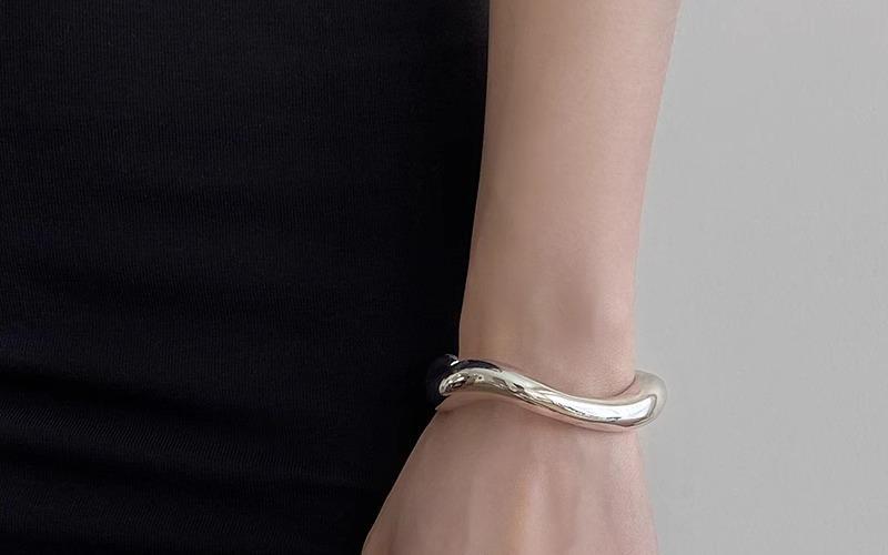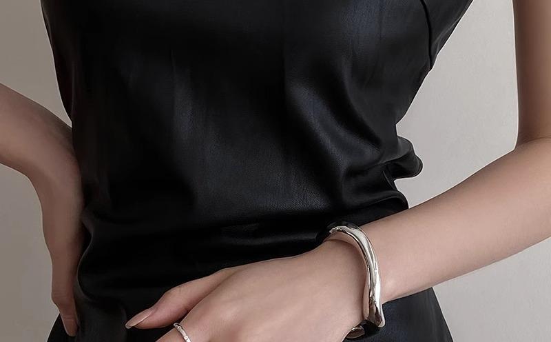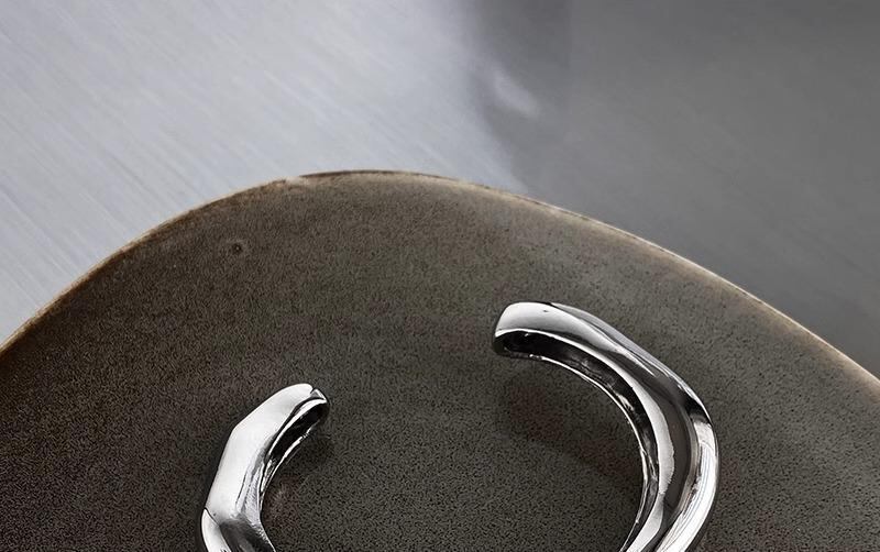 バングル かっこいい アシンメトリー ゴツい ブレスレット メタリック シルバー 個性的 アクセサリー 韓国系 レディース 光沢 艶感 銀色 合金 凸凹 湾曲 カーブ 流れる ユニーク ジュエリー ニッチ お呼ばれ パーティー 洗練 きれいめ オシャレ