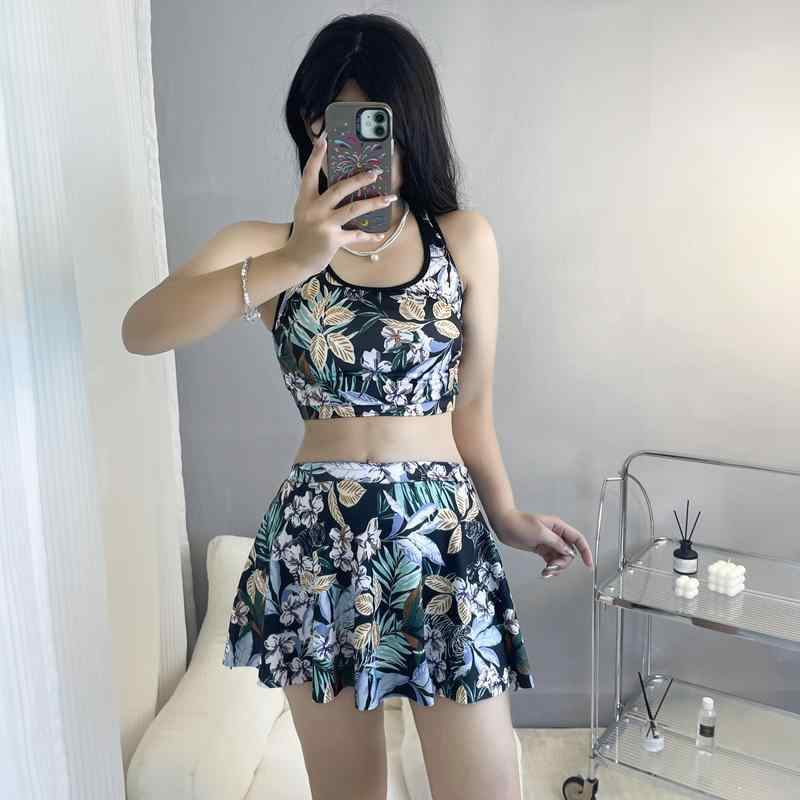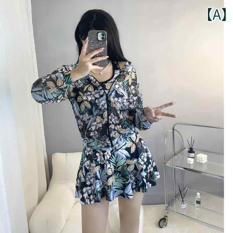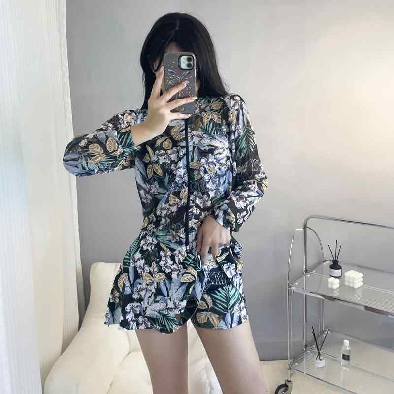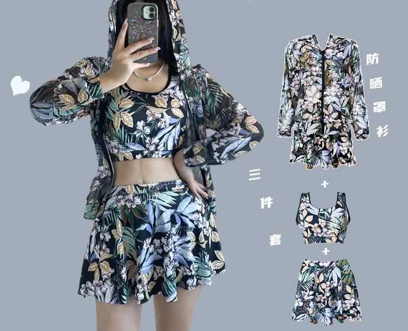 タンキニ ビキニ ラッシュガード 3点セット 花柄 ボタニカル スポーティー 体型カバー スカート きれいめ 大人可愛い フード付 長袖 トップス タンクトップ ビキニ ショートパンツ ジャージ風 個性的 韓国風 リーフ柄 フラワー 模様 おしゃれ
