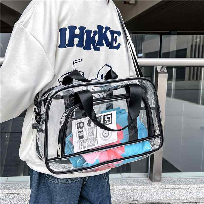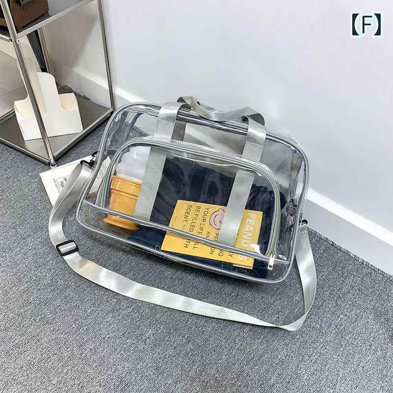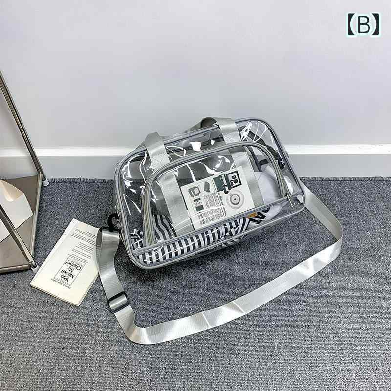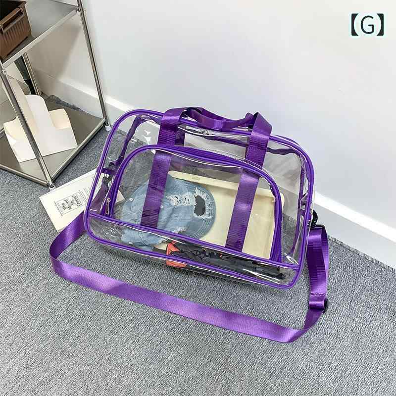 ボストンバッグ ビニール 透明 大容量 メンズ レディース かっこいい 韓国系 ショルダー 斜め掛け 旅行 部活 学生 バック 大きい ビッグバッグ PVC 防水 黒 ブラック 紫 パープル ピンク 新色 シルバー バイカラー でかい クロスボディ