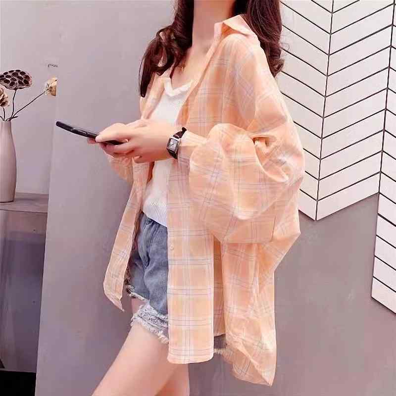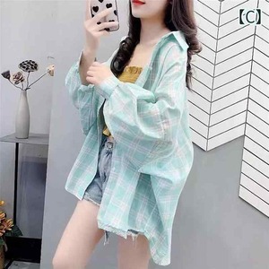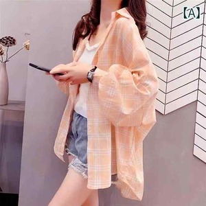 ロングシャツ チェック柄 フード付 可愛い 薄手 パーカー 韓国系 ブラウス 長袖 きれいめ カジュアル 春夏 ジャケット 日焼け防止 オレンジ 黄色 イエロー 緑 グリーン 透け感 シアー ロングパーカー フーディ オシャレ ボリューム袖 ラフ