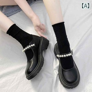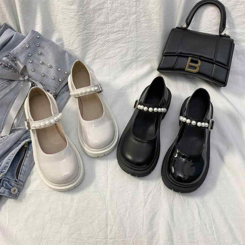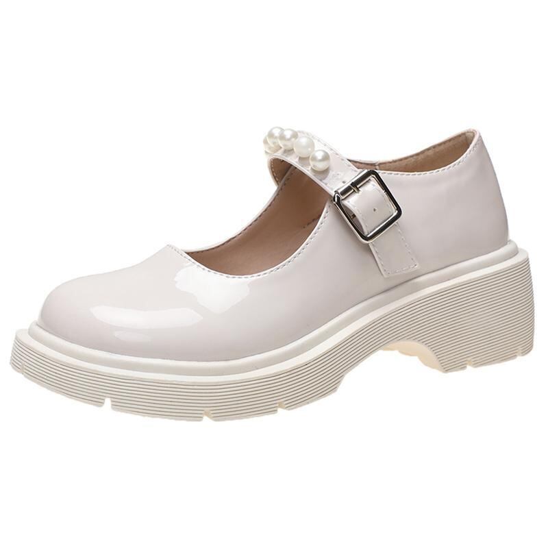 ローファー 可愛い パール付 レトロ 厚底 黒 白 スリッポン パンプス レディース ガーリー かわいい ストラップ付 韓国風 PUレザー 革靴 光沢 マット 艶 個性的 ブラック ホワイト 真珠 イミテーション パール アクセ メイド お嬢様 コスプレ