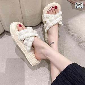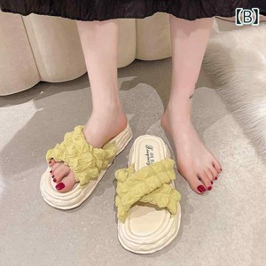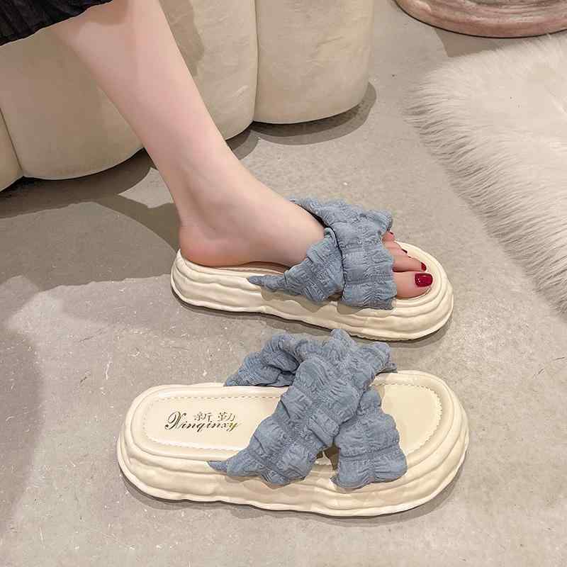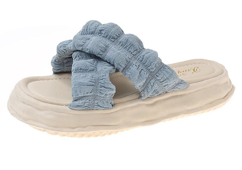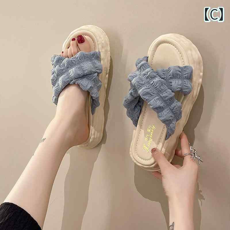サンダル 厚底 くしゅくしゅ 可愛い クロス ビーサン スリッパ 韓国系 春夏 シューズ 白 ホワイト 青 ブルー 黄色 イエロー 無地 バイカラー ふわふわ 雲 リボン シュシュっぽい ビーチサンダル レトロ ガーリー 人気 個性的 もこもこ くつ