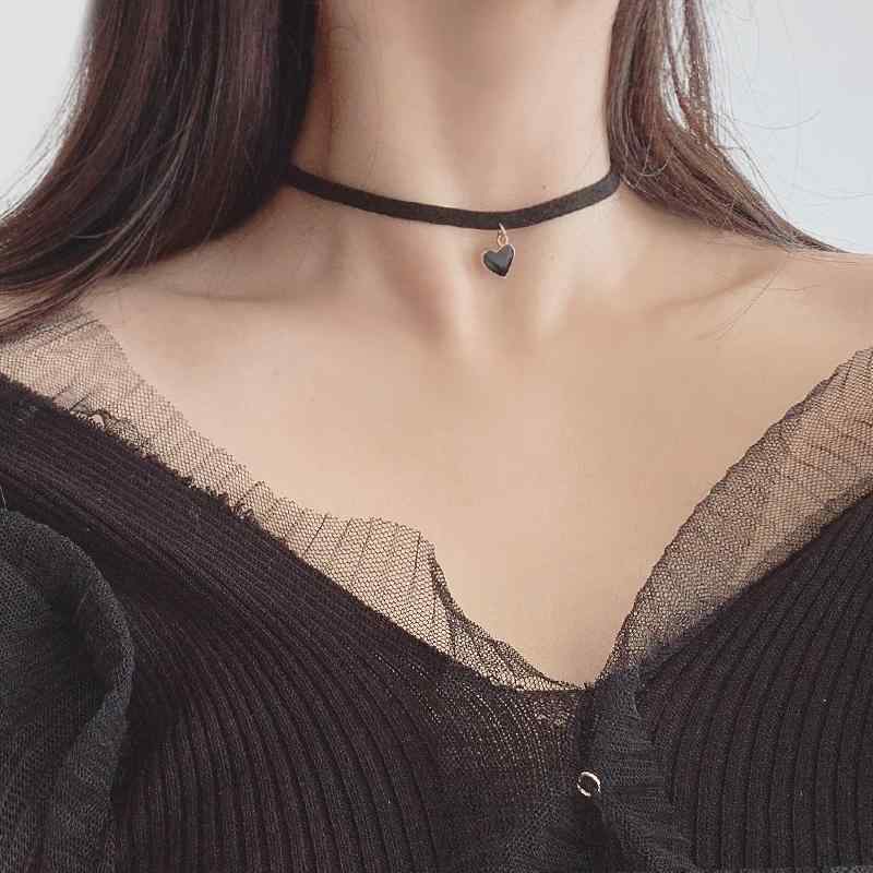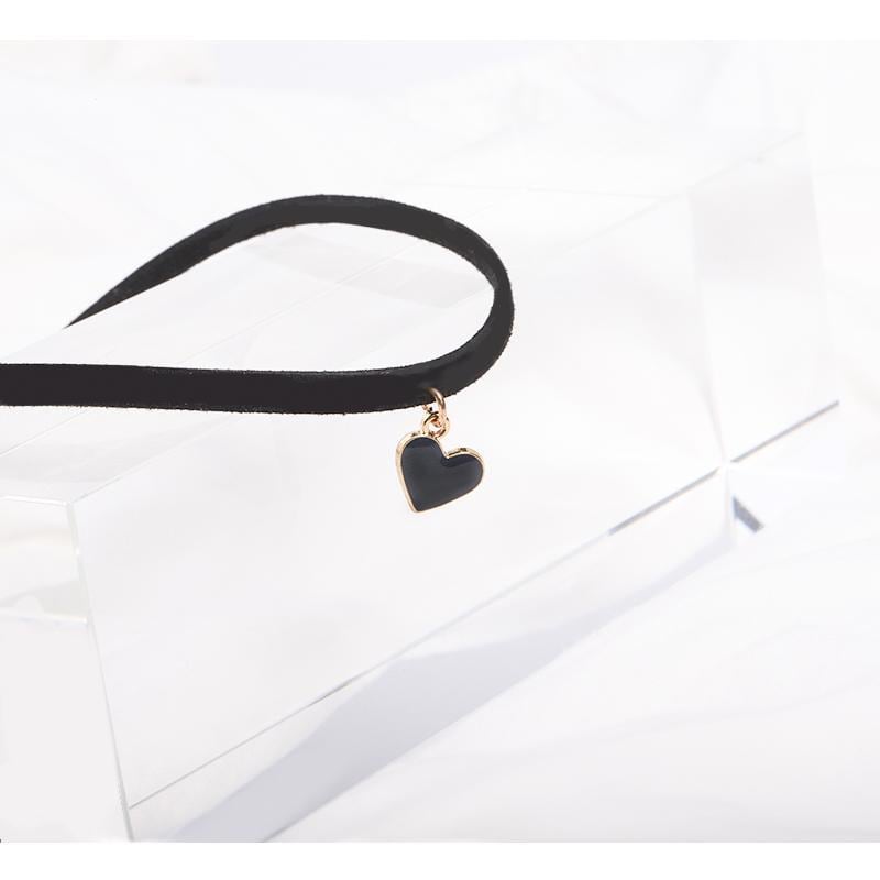 チョーカー 黒 ハート 太め ペンダント 可愛い かっこいい ネックレス ベルト レザー 韓国系 レディース ダーク ブラック コーデ ハート型 チャーム シンプル 大人 女子 レトロ おしゃれ デイリー パーティー アクセサリー オシャレ ラフ