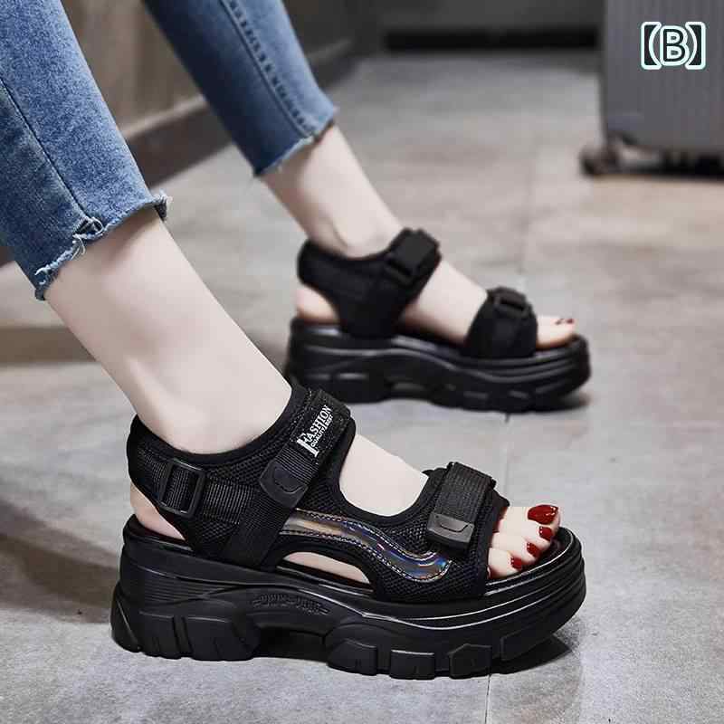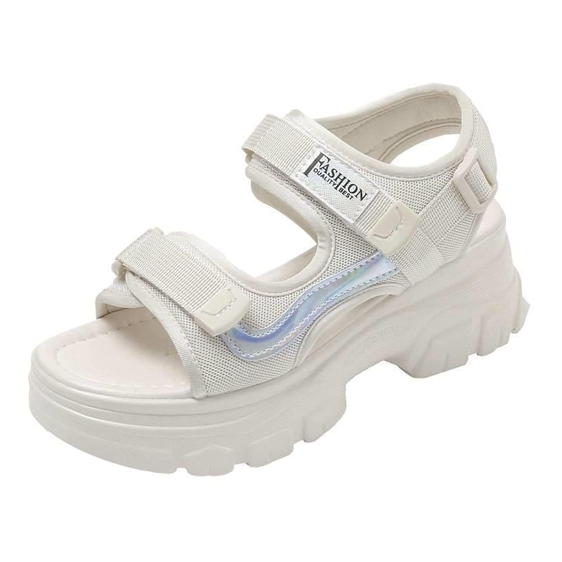 スポサン 厚底 黒 白 シンプル かっこいい ダッド サンダル レディース メッシュ 通気性 ビーサン 韓国系 春夏 シューズ ブラック ホワイト 可愛い ボーイッシュ ゴツい おじさん パパ スポーツサンダル ラフ メンズライク