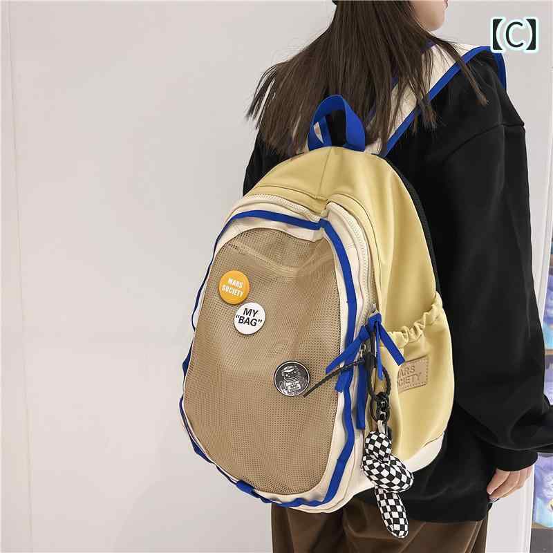 リュックサック 大容量 可愛い 大きい バックパック 個性的 カラフル レディース メンズ バイカラー 缶バッチ レトロ リュック ビッグサイズ A4 大学生 通学 学校 スクールバッグ 黄色 イエロー 黒 ブラック ユニーク ポップ かわいい レトロ