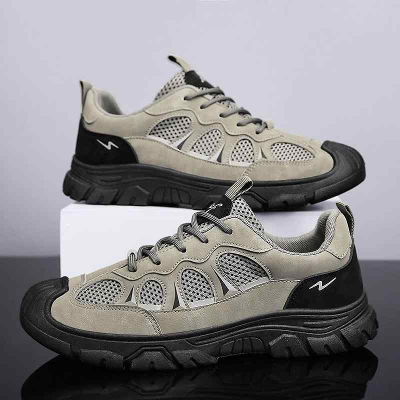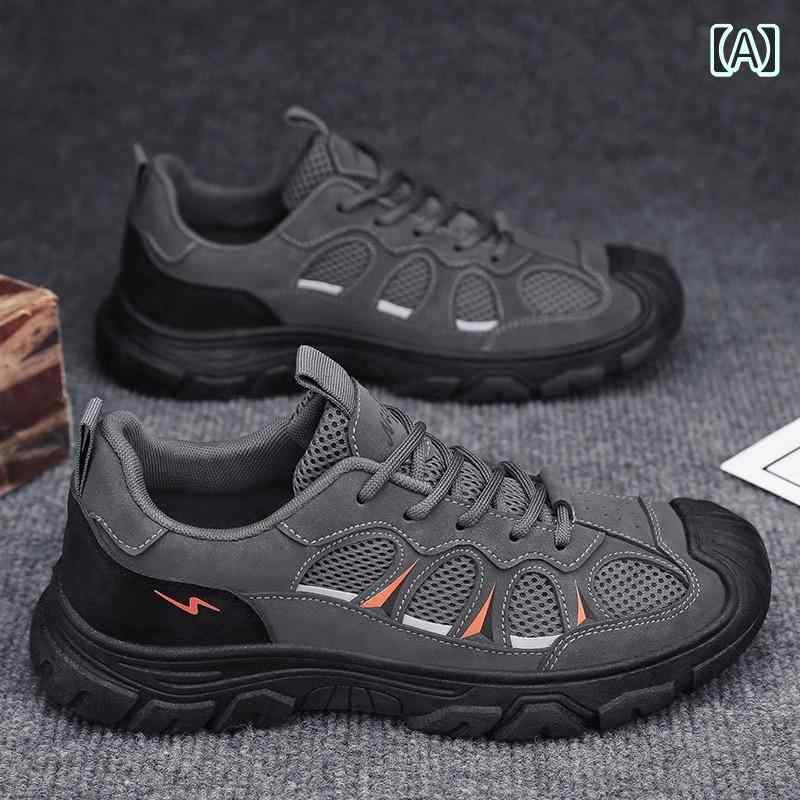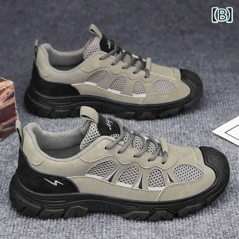 スニーカー メンズ かっこいい 個性的 ランニング ウォーキング シューズ 軽い クッション メッシュ 通気性 運動靴 韓国系 黒 ブラック カーキ バイカラー アウトドア キャンプ 通勤 通学 運動 スポーツ 軽量 おしゃれ シンプル 自転車 痛くない