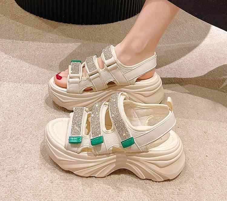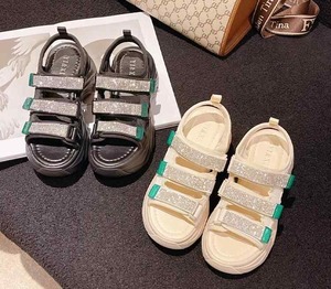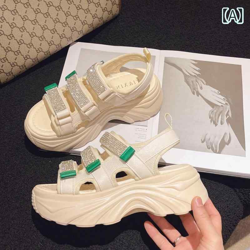 スポサン 厚底 サンダル ラインストーン キラキラ スポーツサンダル レディース 大人 きれいめ 韓国風 個性的 シューズ ビーサン ストラップ 黒 白 グリッター クリスタル 無地 ベルト 緑 グリーン コンフォートこなれ感 クリスタル 華やか