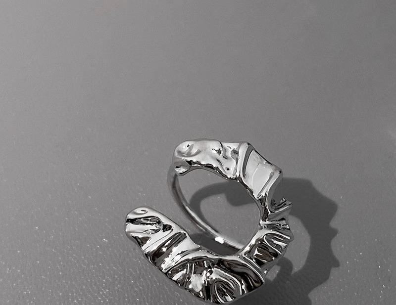 リング かっこいい U字型 メタリック シルバー 指輪 韓国系 オープンリング 個性的 凸凹 ゴツゴツ クール アクセサリー レディース 銀色 合金 ユニーク 大きい フォークリング デイリー ニッチ ルーズ モード 目立つ 調節可能