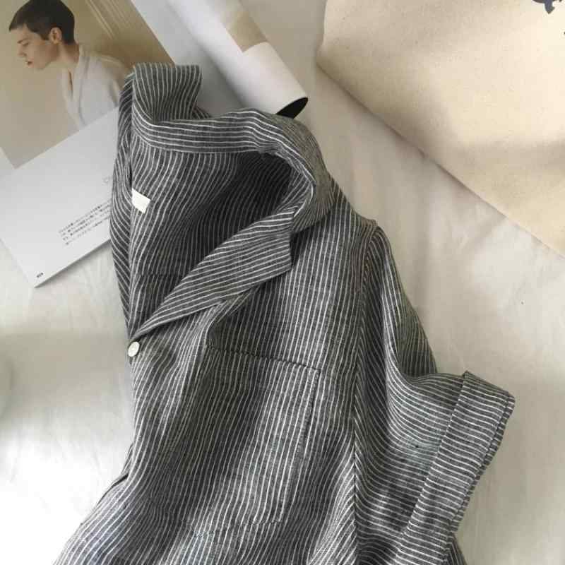 ワンピース 膝丈 膝下 ストライプ 半袖 シャツワンピ レディース グレー 灰色 モノトーン 襟付き 前開き ボタン こなれ感 カジュアル 春夏 ワンピ ドレス シャツ風 ベーシック おしゃれ ママ ロングシャツ 楽ちん 薄手 涼しい グレージュ