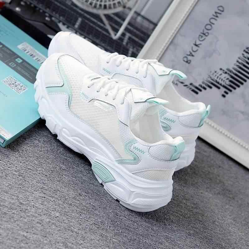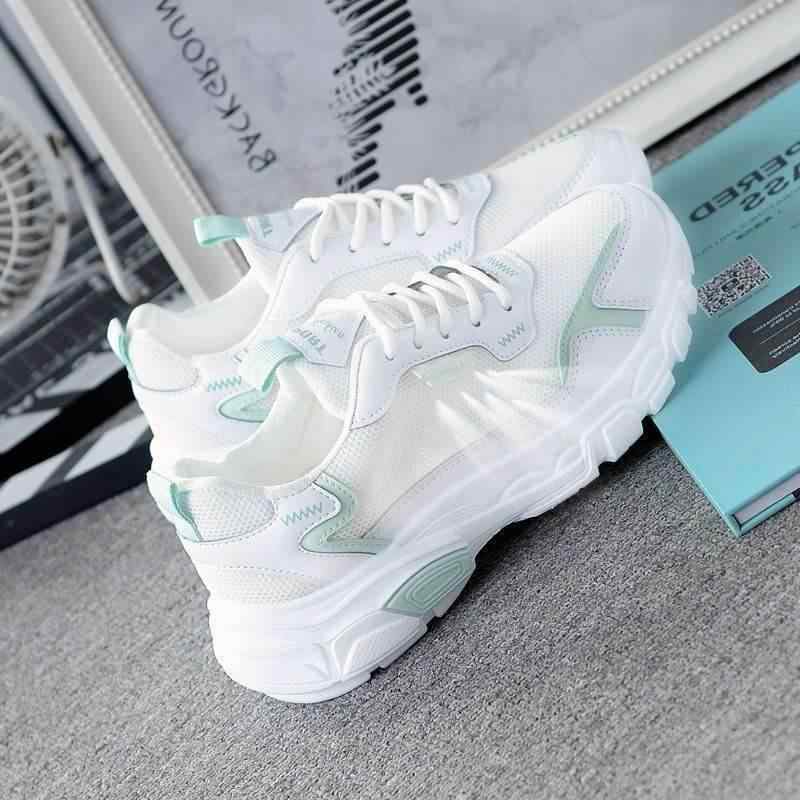 白スニーカー 涼しい 個性的 春夏 シューズ メッシュ 通気性 韓国系 スニーカー 厚底 ホワイト 白色 きれいめ 運動靴 オレンジ 緑 グリーン ポイント バイカラー アクセント かっこいい 蒸れにくい ローカット ダッドスニーカー ハイテク