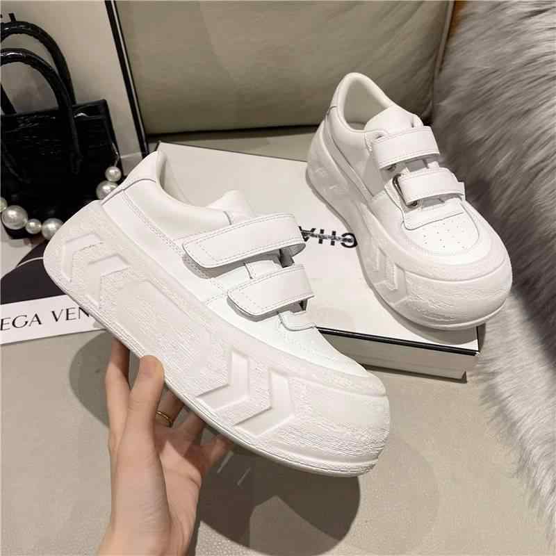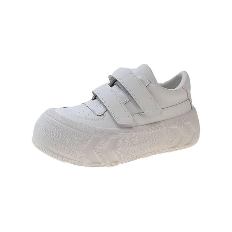 超厚底 スニーカー 白 黒 レトロ 可愛い 紐なし スリッポン 韓国系 シューズ ホワイト ブラック 無地 マジックテープ 運動靴 厚底 上履き風 個性的 ユニーク 学生 通学 くつ クツ ローカット ラウンドトゥ ガーリー キュート モノクロ