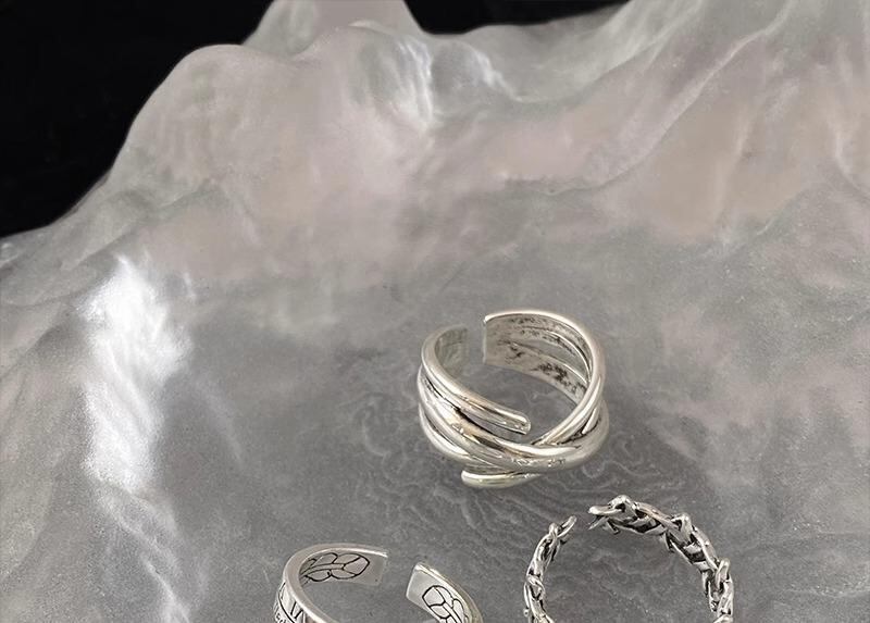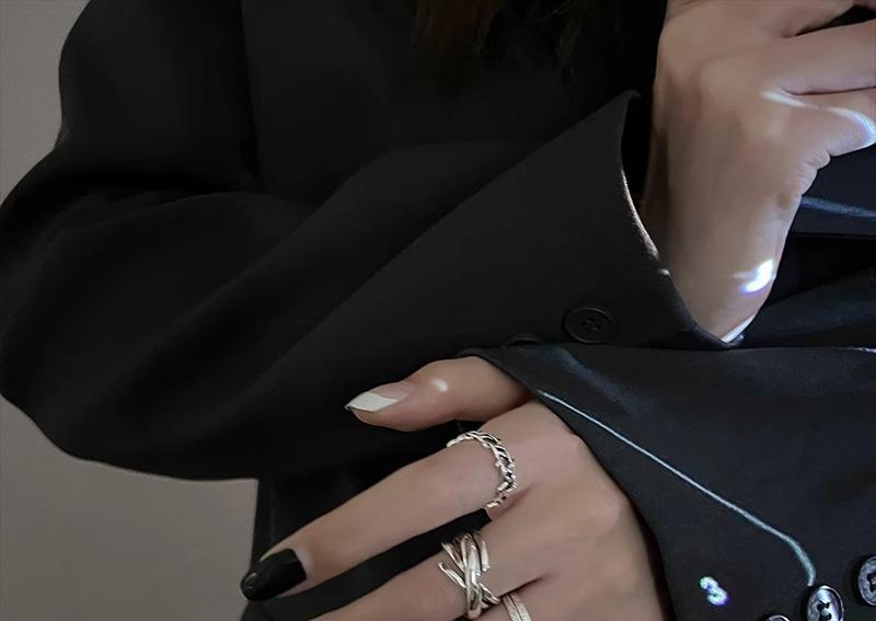 オープンリング 3点セット かっこいい リング メタリック シルバー 個性的 指輪 韓国系 レディース クール ロック フォークリング 銀色 光沢 艶あり クロス ユニーク アルファベット デザイン ニッチ お得 マニッシュ アクセサリー フリーリング